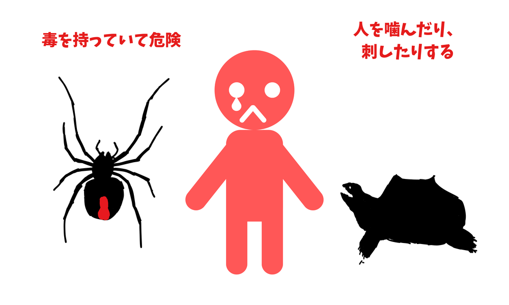 たとえば、毒を持っている外来生物に噛まれたり、刺されたりする危険や、その生物に傷つけられることで感染症などに感染する 危険があります。