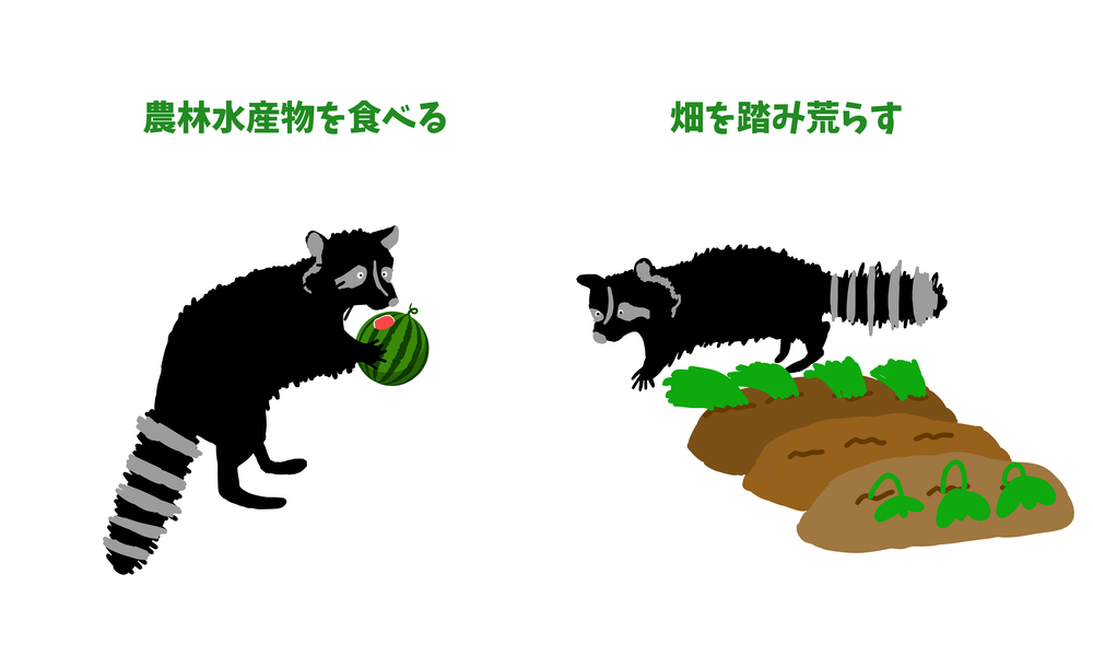 外来生物の中には、畑を荒らしたり、漁業の対象になる生物を捕食したりして、私達の生活にも影響を与えるものもいます。