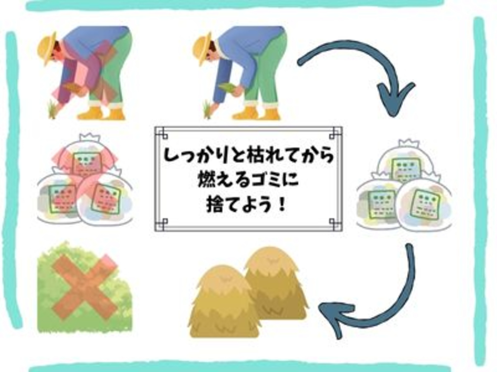 処分する…抜き取った植物は、種が飛散しないように袋に入れ、確実に枯死させてから燃えるごみとして処分してください。
