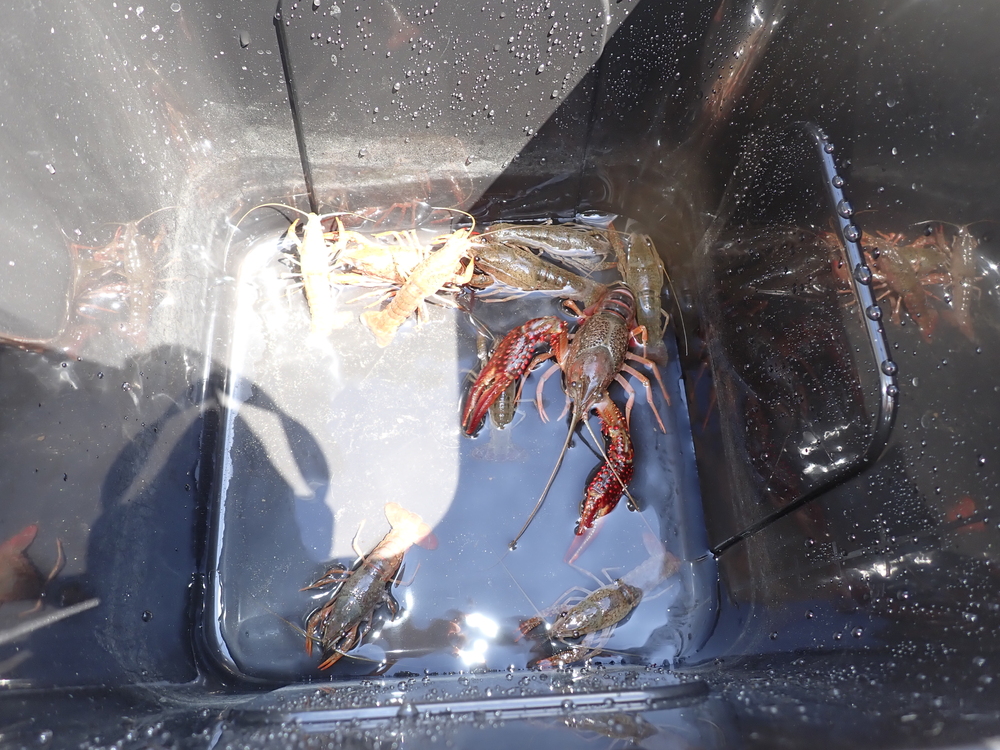 最初に食料として活用する外来生物は、田んぼや水路などで大量に繁殖してしまっているアメリカザリガニです。