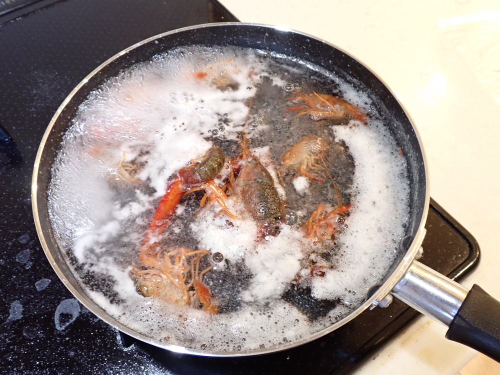 そしたら、沸騰した水で5分以上茹でます。アメリカザリガニはあまりきれいとは言えない環境に住んでいるため、様々な寄生虫や菌の宿主となっている場合があります。それらは肺吸虫などの私達に影響を与えるものもいるので、加熱することでそれらを死滅させ、安全に食べることができるようになります。