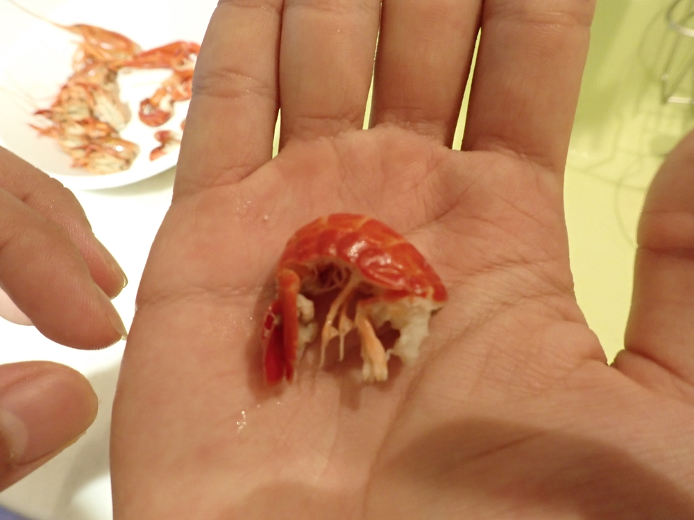 食べてみた感想は、エビと近縁なだけあって、腹部はエビの風味があり美味しかったですが、噛み続けていると、川の泥臭さや臭みがでてきました。加熱だけでは身の臭みは取り切れなかったとわかり、料理酒などにあらかじめ浸けることで、より食べやすくなると思います。爪の部分はカニに近い味がしました。全体的に味は美味しかったのですが、可食部が少ないと感じました。十匹のザリガニから以下の量しか取ることができませんでした。