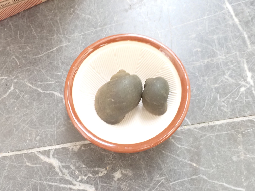 肥料として使うのは、スクミリンゴガイの殻のみです。アメリカザリガニと同じく、身の部分を使ってしまうと土の中で腐って強烈な匂いを発してしまうので、殻だけにしました。殻だけを取り除いたら、天日干しして、よく乾燥させます。