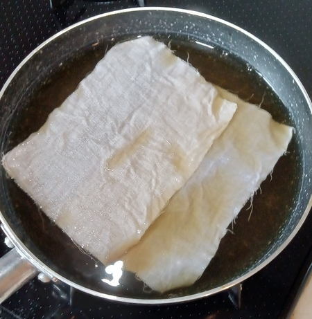 まず、染める布を牛乳か豆乳に15分ほど浸けておきます。こうすることで、より染まりやすくなります。浸け終わったら、よく絞って乾かします。