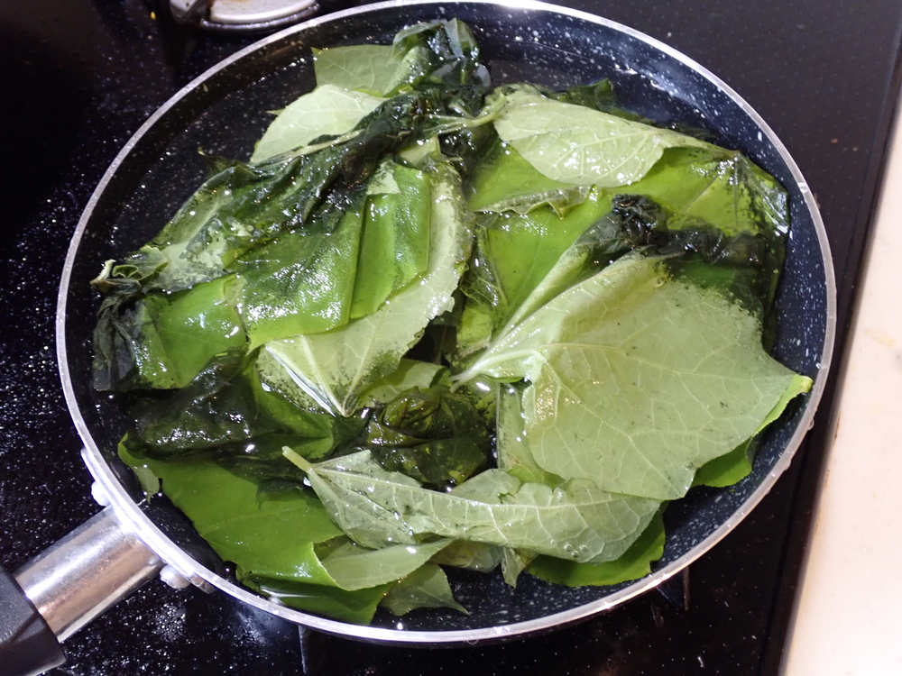 ナガエツルノゲイトウの葉を使って、染料を作りました。
