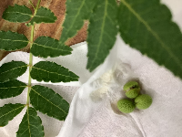 果皮・実と小枝に分け、果皮だけを集めて、すりこぎとすり鉢を使って細かくして、瓶に詰めました。