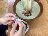 枝豆を食べ、カラカラになった大豆を収穫し豆ごはんにして食べたり、食育講座で石臼で大豆を挽いてきな粉を作る体験をさせていただいていました。