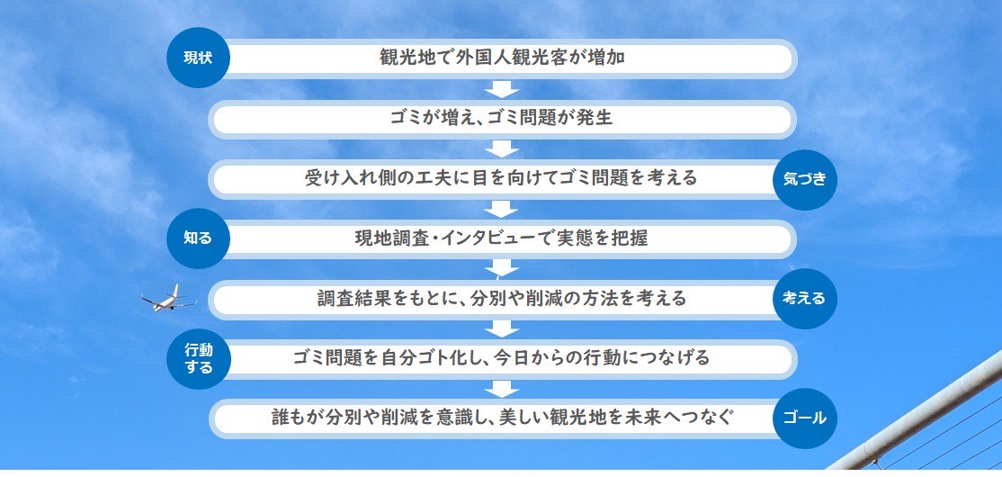 外国人観光客にも分かりやすいゴミの捨て方や分別の方法、ゴミを出さない・増やさないための考え方を発信します。