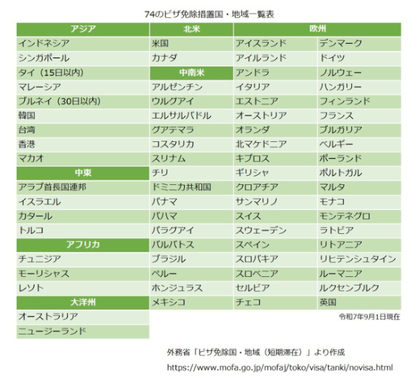 入国ビザの要件が緩和 日本は、以下の表の71の国・地域に対するビザ免除措置を実施しており、日本にビザなしで入国することができます。 ビザの取得には手間や時間、費用がかかるため、ビザの取得が不要であることで手軽に旅行ができ、インバウンド増加要因となります。 次のページに進む>> << 前のページに戻る