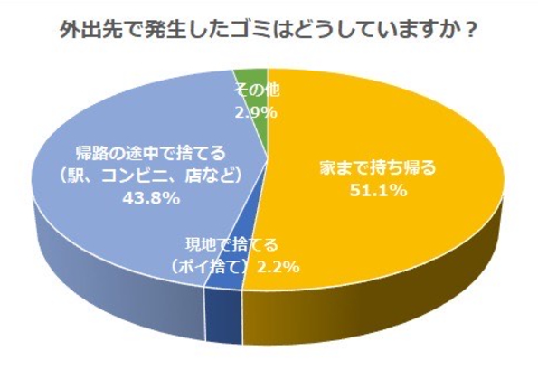 〇家まで持ち帰る 71人 〇現地で捨てる(ポイ捨て) 3人