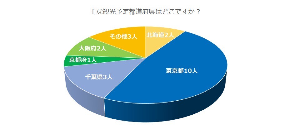 羽田空港を利用する外国人観光客は、羽田空港の都心に近い立地を利用して東京観光を楽しもうと考えている人が多いため、大阪府や京都府、福岡県へ移動を考えている人が少なかったと考えます。しかし、東京から電車で移動可能な千葉県、長野県、岐阜県、静岡県を訪れる予定の外国人観光客が見受けられました。
