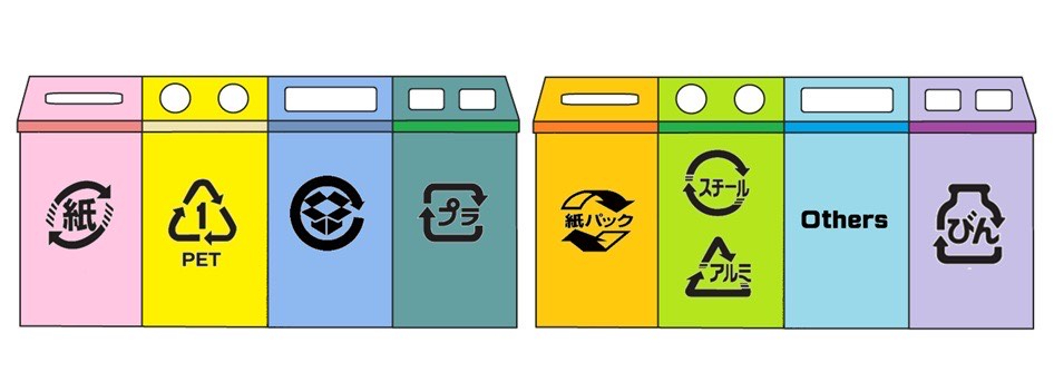 そこで私たちは、ゴミ箱をリサイクルマークごとに分別し、各ゴミ箱にリサイクルマークを表示することを提案します。リサイクルできないものについては「Other」とすることで、国や言語の違いに関係なく、視覚的に分かりやすい分別が可能になります。
