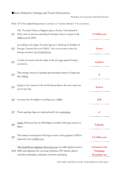 【問題】下線部を正しく直すワークシートEnglish ver 【解答】下線部を正しく直すワークシートEnglish ver